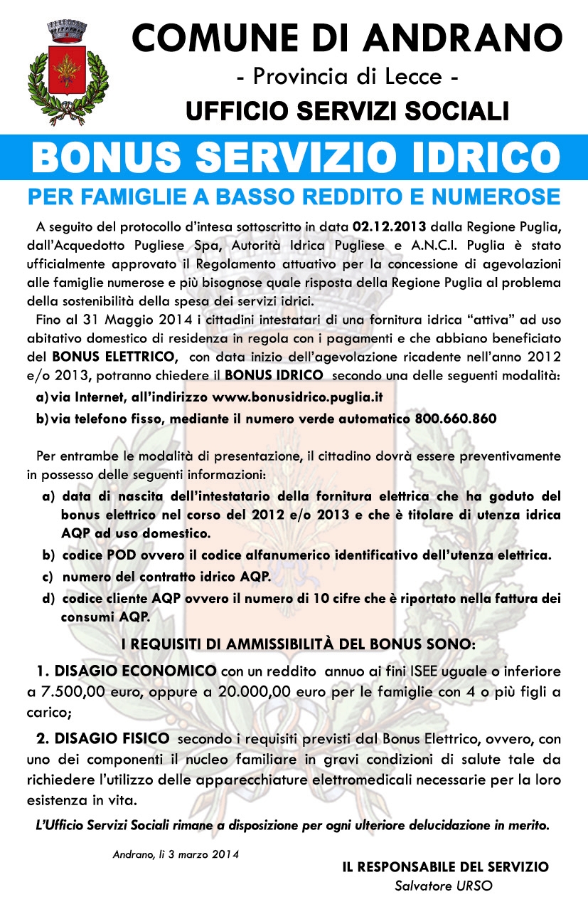 BONUS SERVIZIO IDRICO