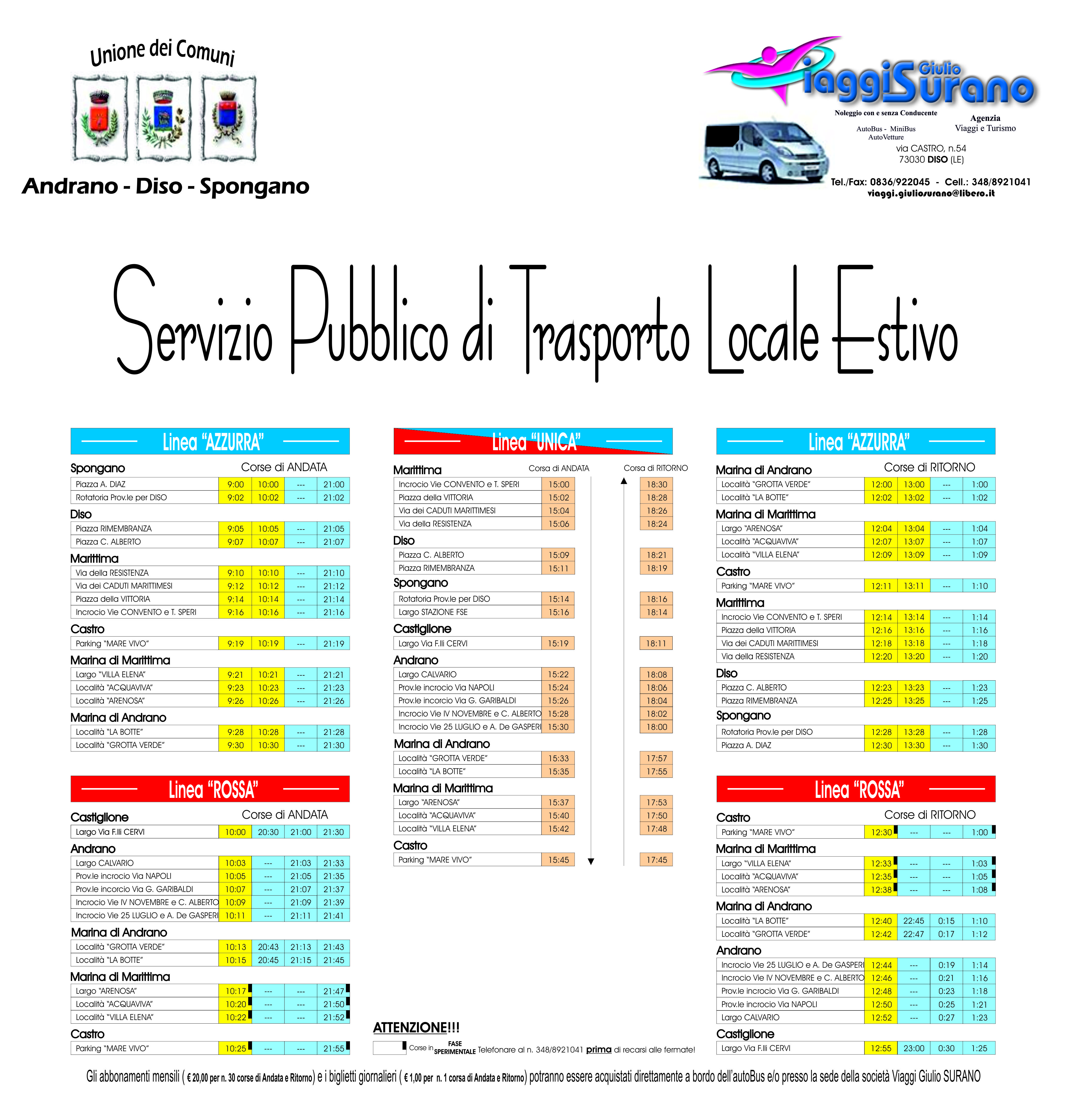 TRASPORTO PUBBLICO LOCALE ESTIVO - UNIONE DEI COMUNI - A PARTIRE DAL 15 LUGLIO 2015