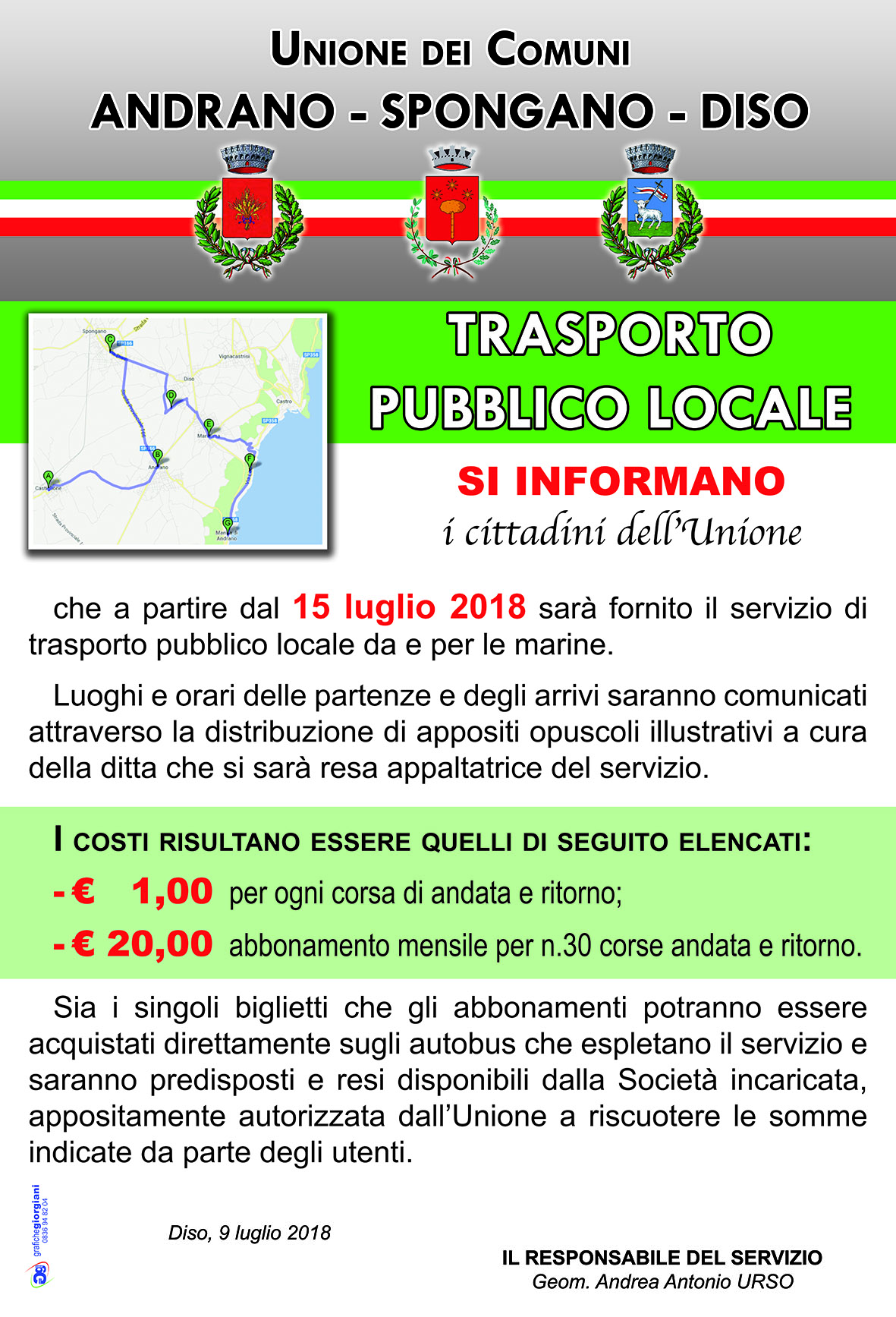 Dal 15 Luglio parte il servizio - Orari e corse all'interno