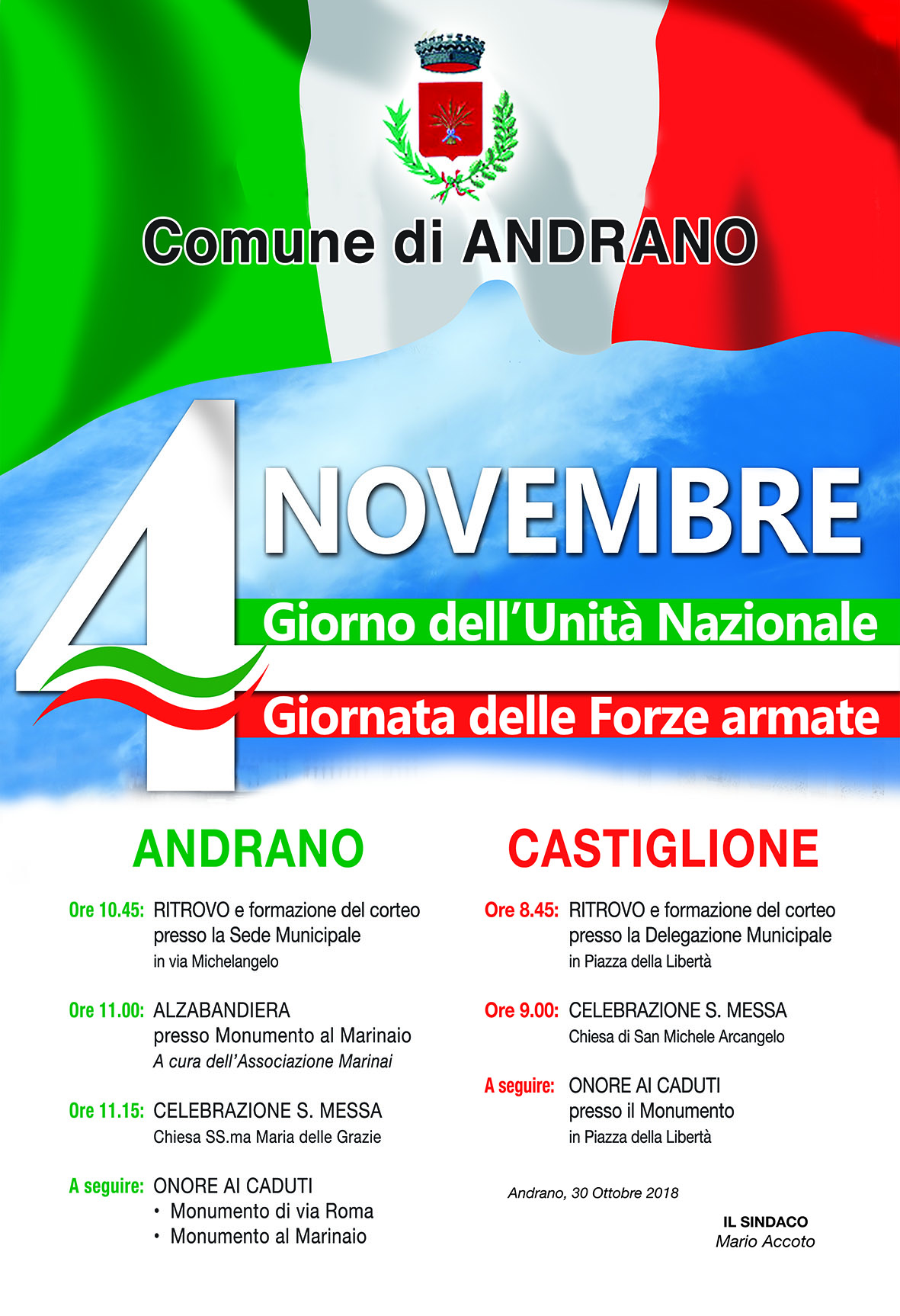 Domenica 4 Novembre le Cerimoinie commemorative come da programma.