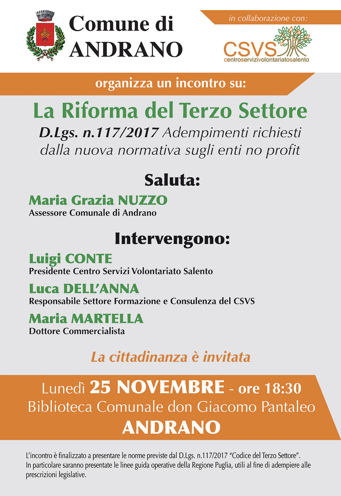 LUNEDI' 25 NOVEMBRE ORE 18,30 - BIBLIOTECA COMUNALE