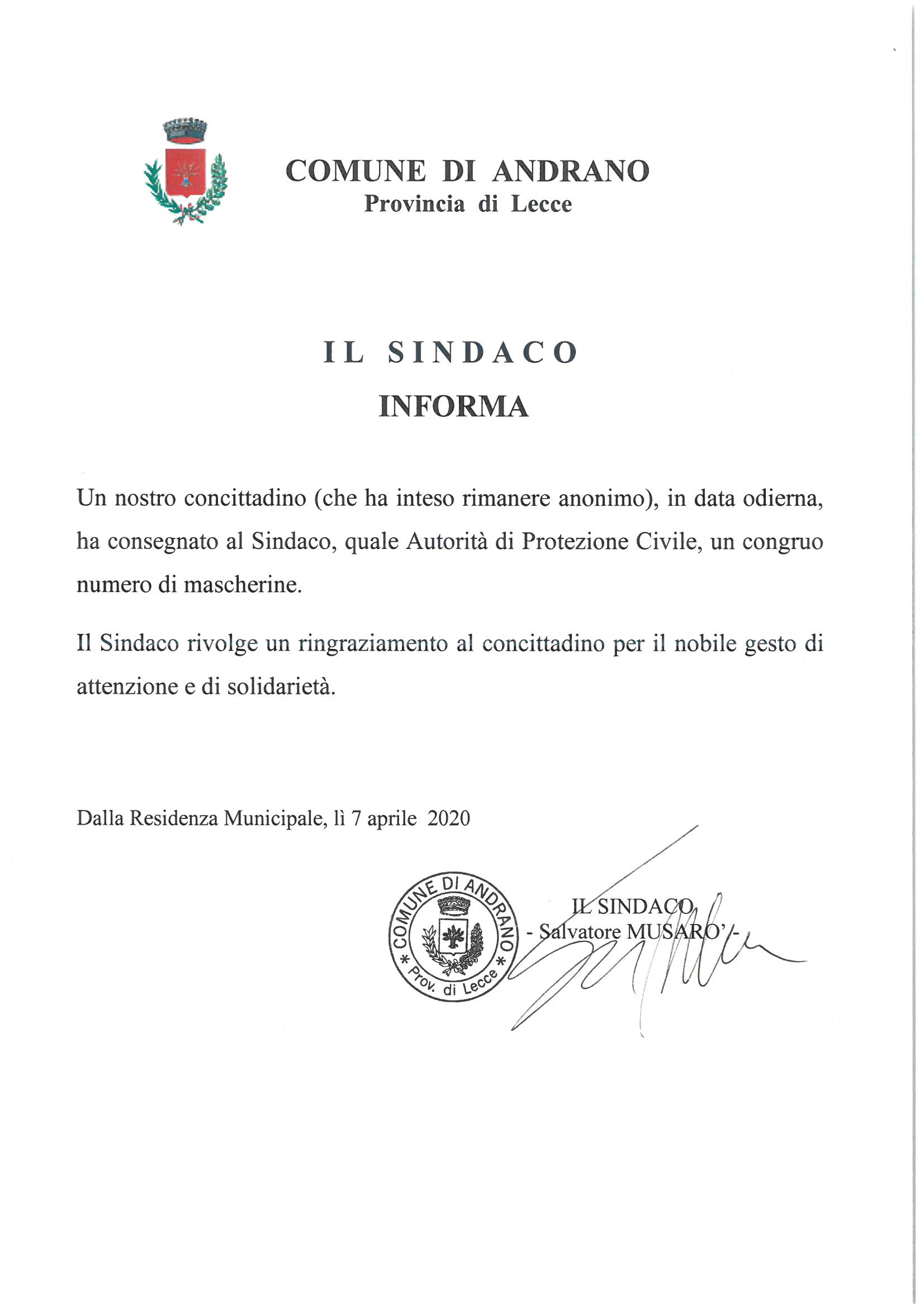 CONSEGNA MASCHERINE