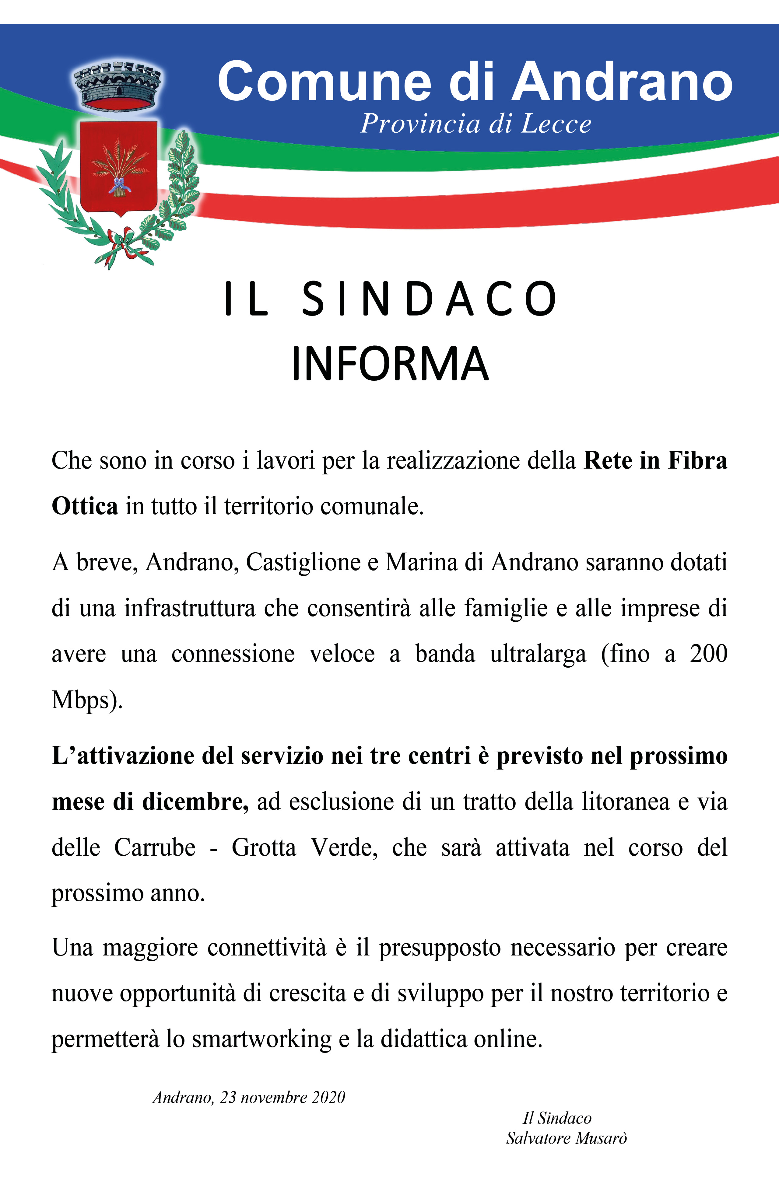 RETE IN FIBRA OTTICA SU TUTTO IL TERRITORIO COMUNALE