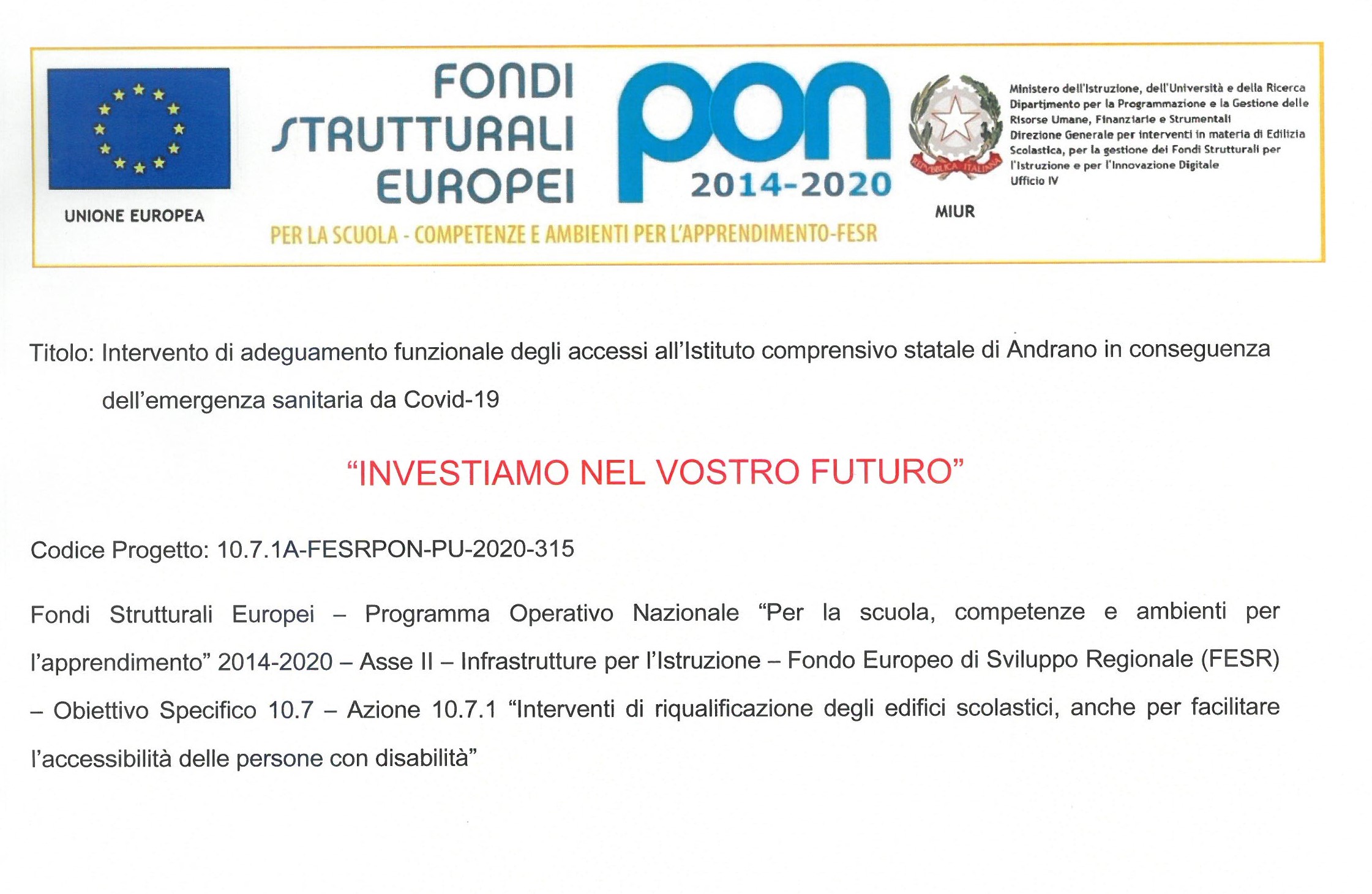 Fondi Strutturali Europei - Programma Operativo Nazionale "Per la scuola, competenze e ambienti per l'apprendimento" 2014-2020 - Asse II - Infrastrutture per l'Istruzione - Fondo Europeo di Sviluppo Regionale (FESR) - Obiettivo Specifico 10.7 - Azione 10.7.1 "Interventi di riqualificazione degli edifici scolastici, anche per facilitare l'accessibilità delle persone con disabilità "