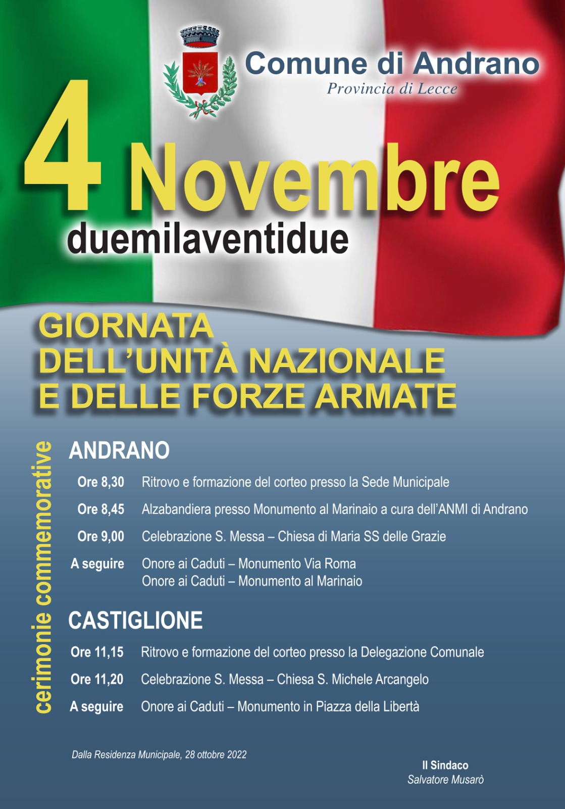 4 NOVEMBRE - GIORNATA DELL'UNITA' NAZIONALE E DELLE FORZE ARMATE
