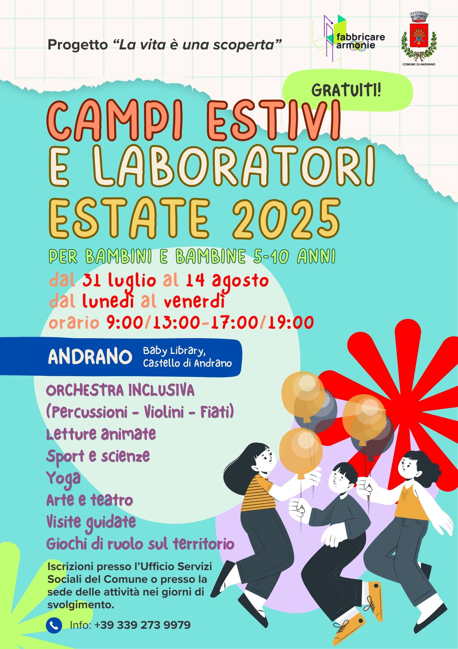 L’iscrizione e la partecipazione a tali laboratori è gratuita e aperta a tutti i bambini e le bambine di età compresa tra i 5 e i 10 anni anche se residenti in altro Comune (purché sia compreso nell’Ambito di Poggiardo).