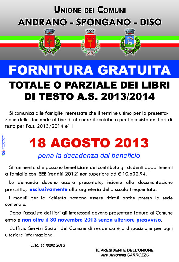 FORNITURA GRATUITA TOTALE O PARZIALE LIBRI DI TESTO 2013