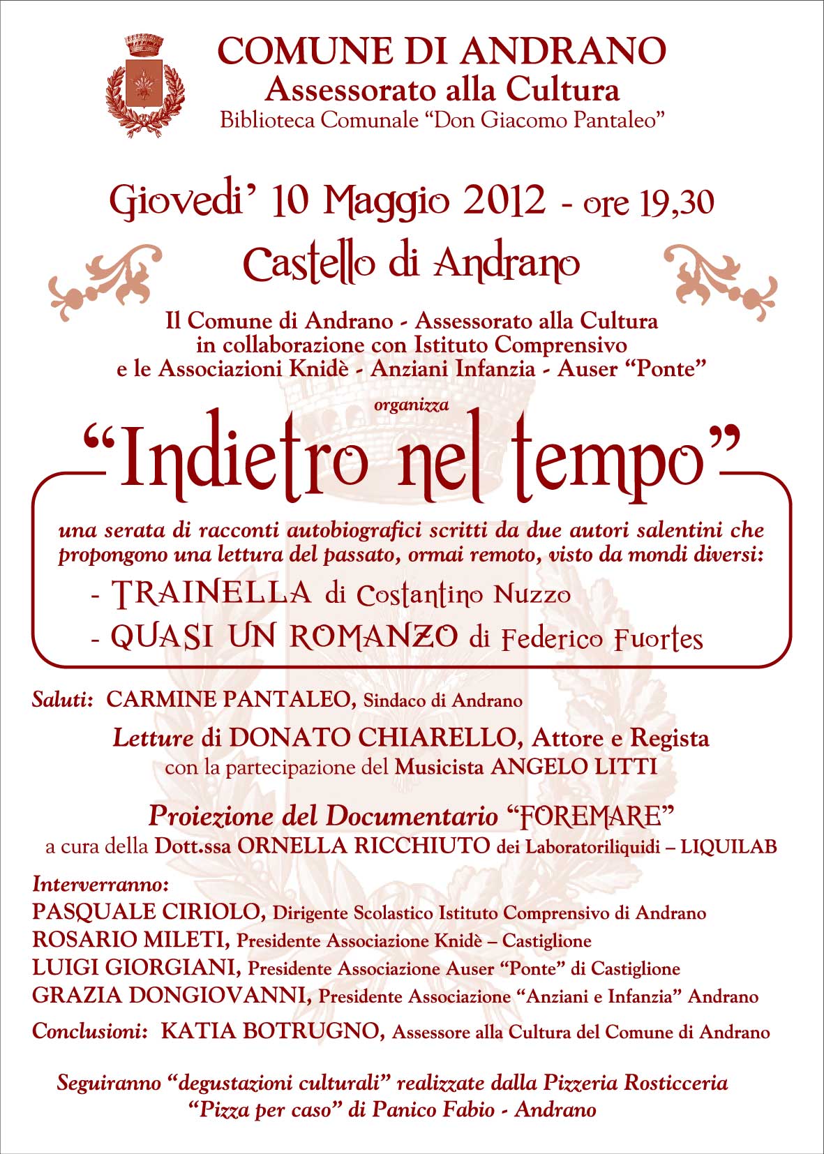 una serata di racconti autobiografici scritti da due autori salentini che propongono una lettura del passato, ormai remoto, visto da mondi diversi :