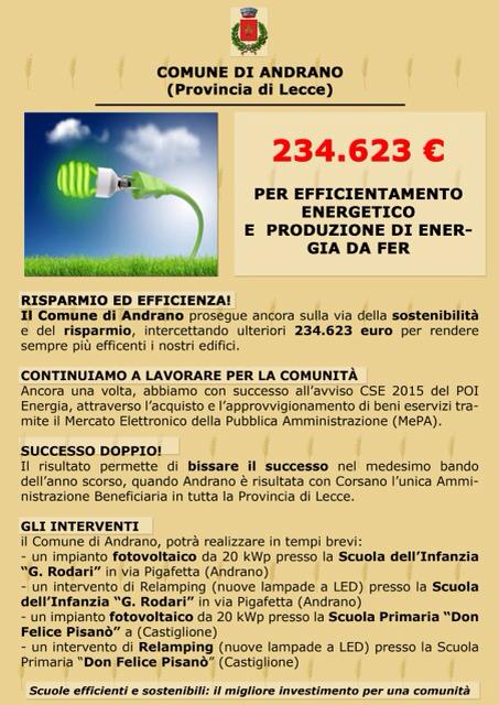 234.623 € : PER EFFICIENTAMENTO ENERGETICO E PRODUZIONE DI ENERGIA DA FER