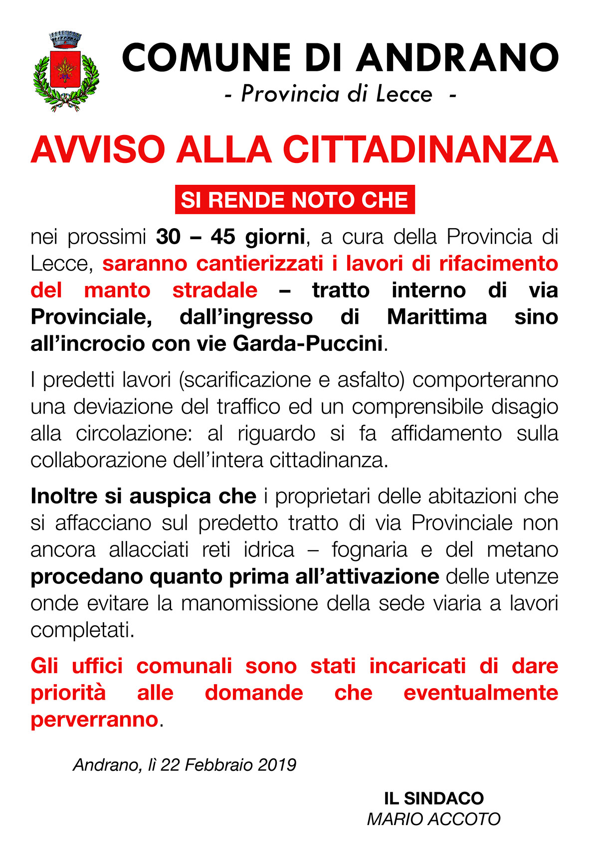 AVVISO ALLA CITTADINANZA
