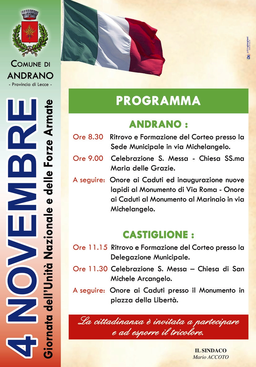 IV NOVEMBRE - GIORNATA DELL'UNITA' NAZIONALE E DELLE FORZE ARMATE