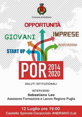 Intervento dell'Assessore Regionale alla Formazione e Lavoro - Sebastiano LEO MartedÌ 12 Luglio ore 19:00 - Castello di Andrano