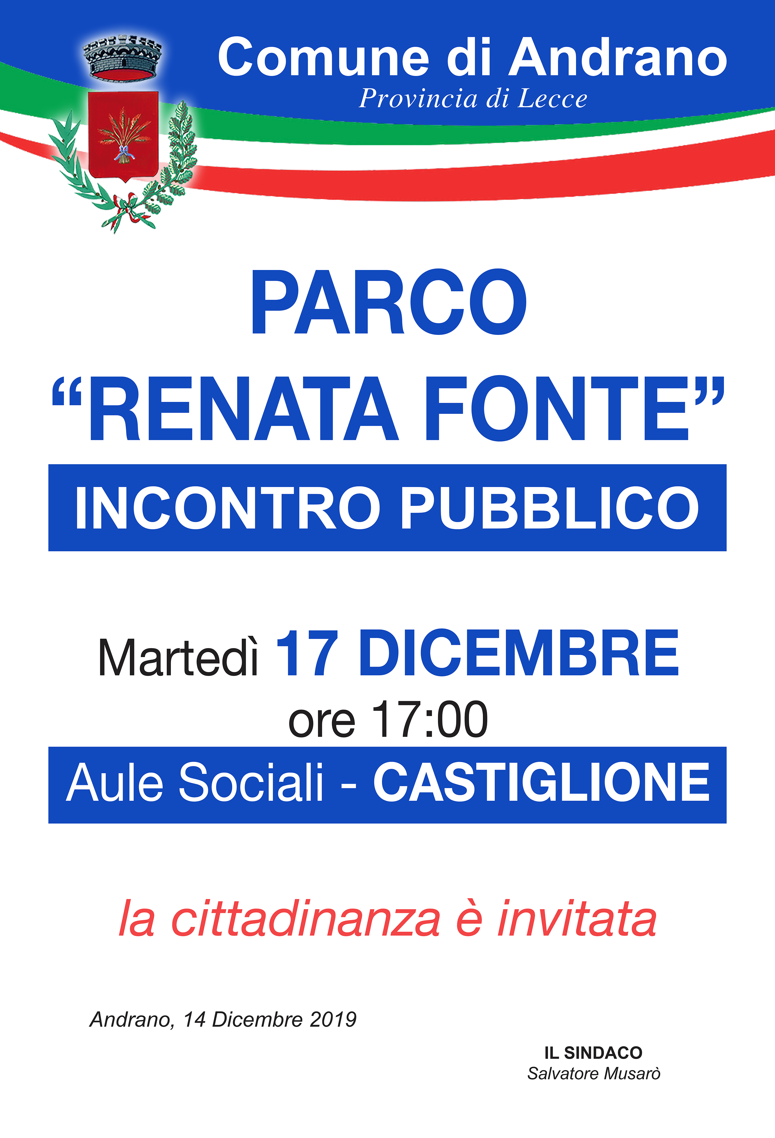 "PARCO RENATA FONTE" - MartedÌ 17 dicembre, ore 17,00 - Aule Sociali Castiglione