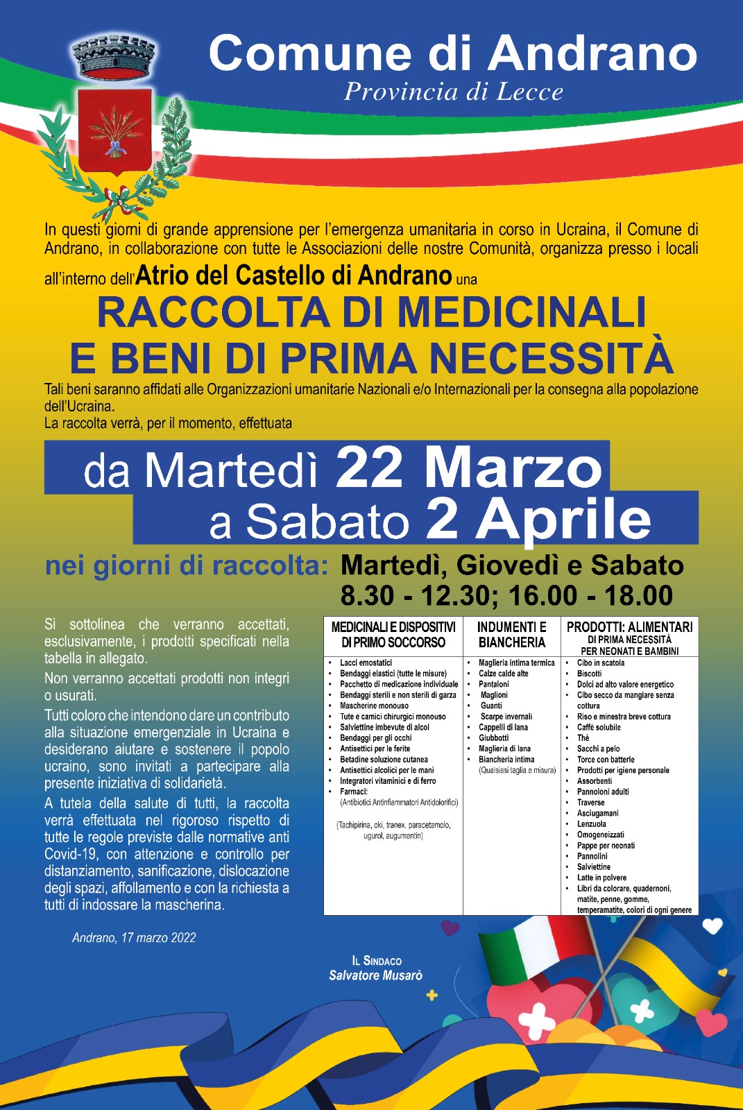 Emergenza umanitaria in Ucraina. RACCOLTA MEDICINALI E BENI DI PRIMA NECESSITA'