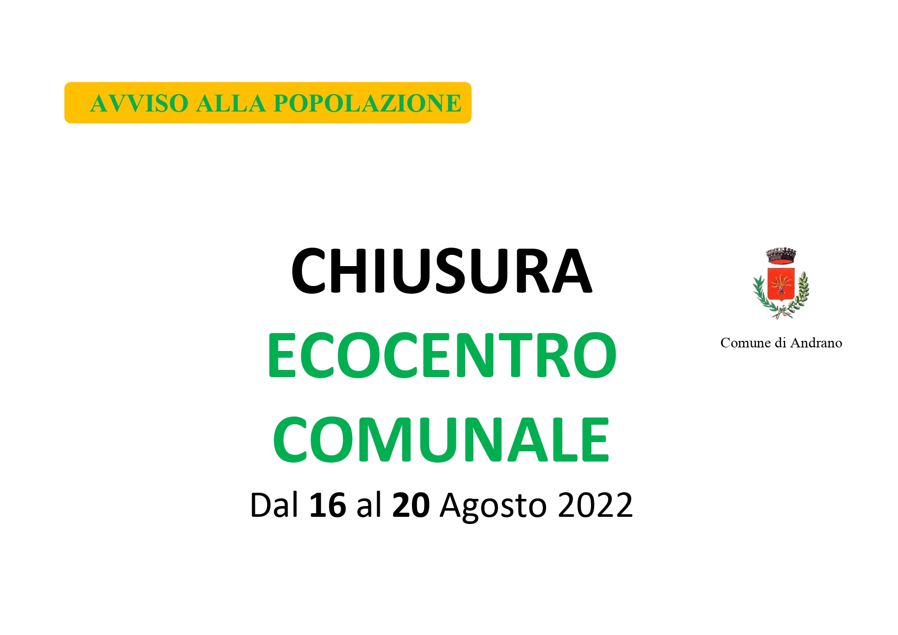AVVISO: CHIUSURA ECOCENTRO COMUNALE DAL 16/08/2022 FINO AL 20/08/2022