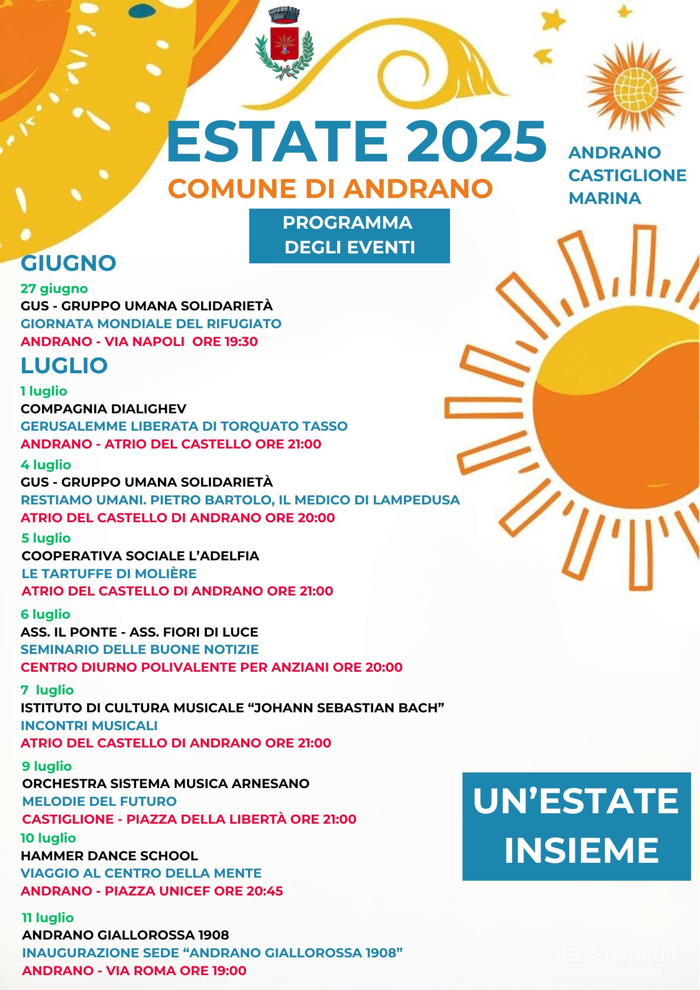 Estate 2025: il programma degli eventi del Comune di Andrano