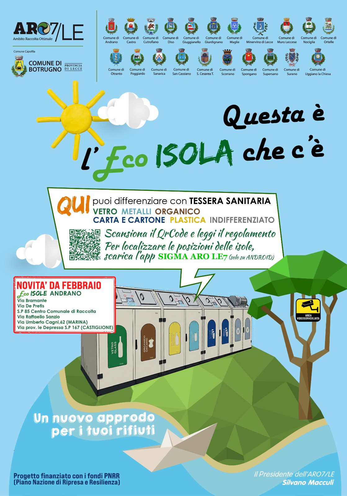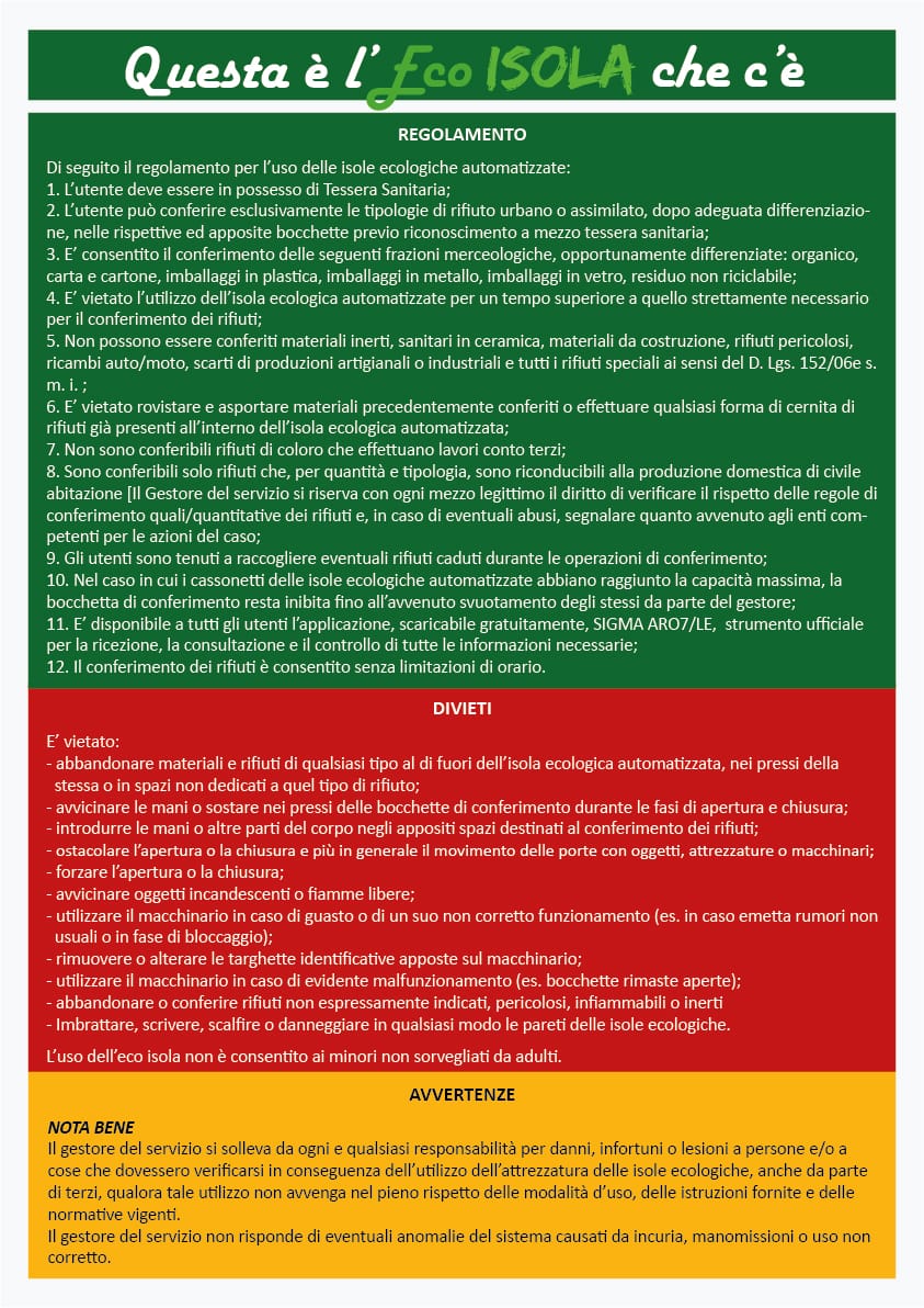 Si informa la cittadinanza che sono attive le nuove Eco Isole informatizzate destinate al conferimento dei rifiuti urbani.