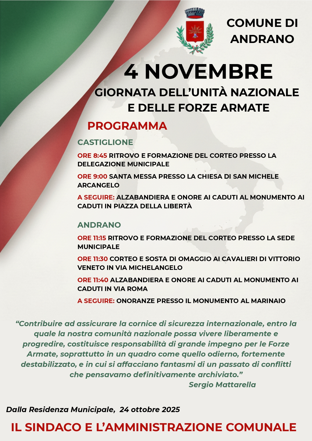 A SEGUIRE: ALZABANDIERA E ONORE AI CADUTI AL MONUMENTO AI CADUTI IN PIAZZA DELLA LIBERTÀ