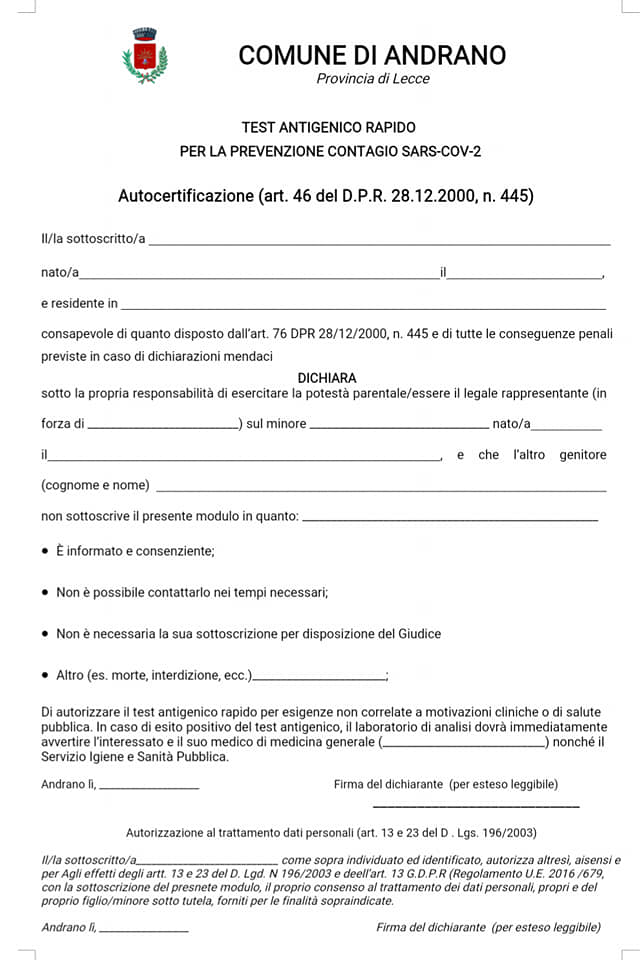 Sono stati effettuati n. 276 Test su base volontaria presso il Plesso scolastico via del Mare - Solo uno ਠrisultato positivo tra gli alunni che non frequentano in presenzaESITO_TEST_gennaio_2021.jpgAvviso.jpgautocertificazione.jpgESITO_TEST_gennaio_2021.jpgModulo_prenotazione_e_consenso.pdf